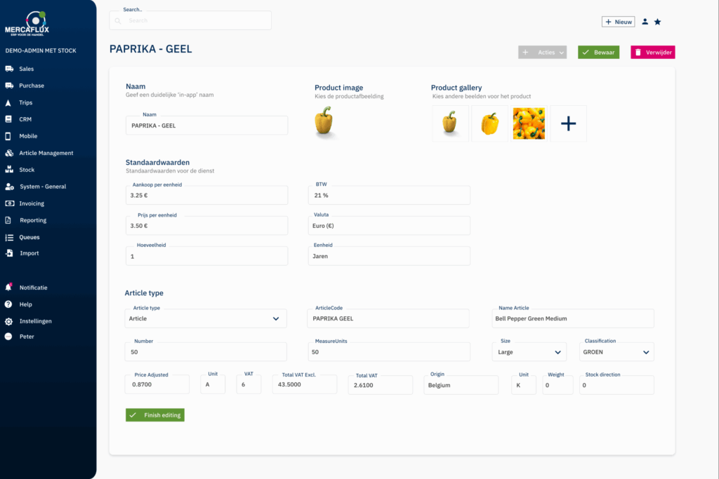 Geen generieke oplossingen, maar een ERP-systeem dat écht aansluit bij uw bedrijfsprocessen. Met Mercaflux beheert u eenvoudig fust, artikelstructuren en veilingdata. Elke parameter, zoals ras, land van oorsprong of maat, zit standaard in ons systeem. Perfect op maat van de AGF-sector, en klaar om uw bedrijf te versterken.